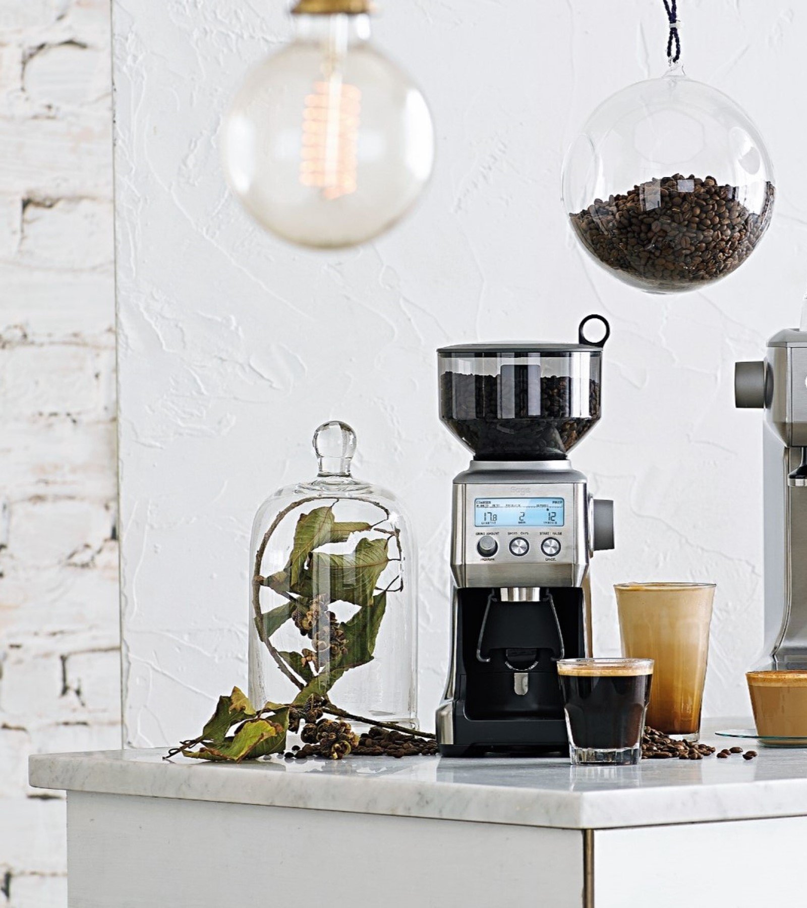 A clear and concise LCD screen shows grind setting, grind time and number of shots or cups you have selected.