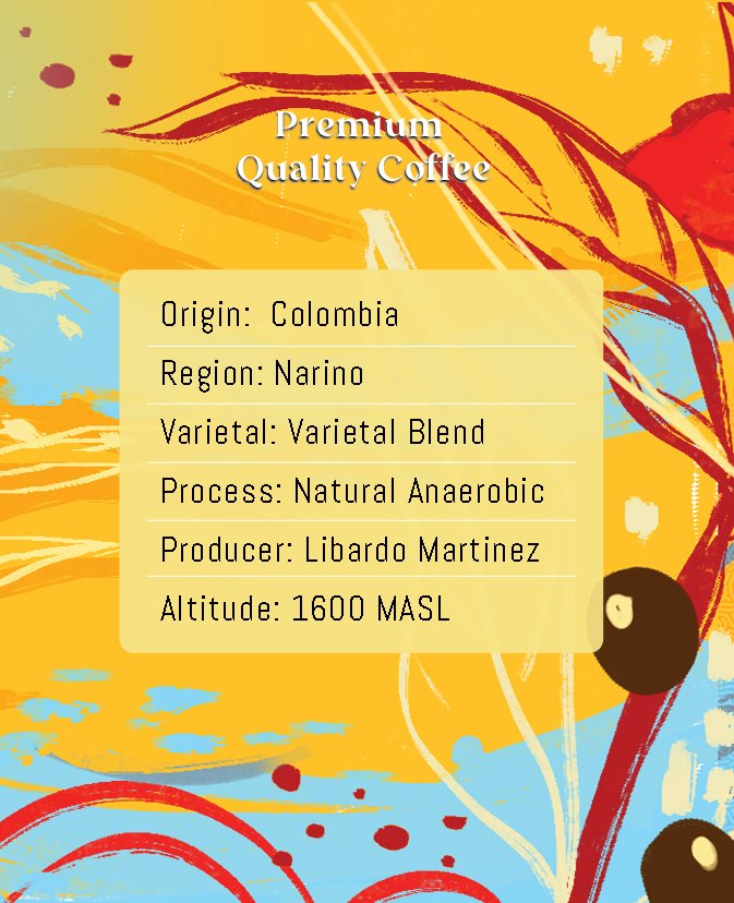 Colombia La Cuevita is a bright and expressive specialty coffee grown in the high-altitude regions of Nariño. Produced by Libardo Martinez, this varietal blend (Caturra & Castillo) undergoes a natural anaerobic process that enhances its complexity and liveliness. Every sip delivers a refreshing sensory experience that highlights Colombia’s rich coffee heritage with a modern edge.